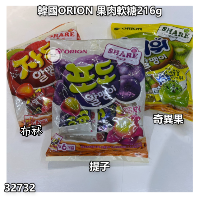 32732.18/5月韓國連線 ORION 果肉軟糖216g(一袋六包)