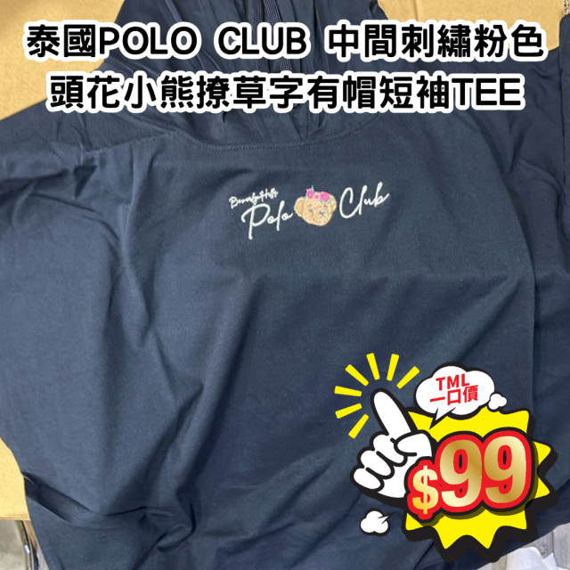 19112.🐥執雞🐥泰國POLO CLUB 中間刺繡粉色頭花小熊撩草字有帽短袖TEE (LNP HB08)⚠️數量有限⚠️先入先得⚠️售完即止⚠️