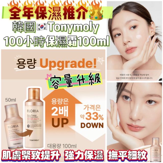 全年保濕推介👑韓國🇰🇷Tonymoly 100小時保濕霜 100ml【現貨在倉 隨單派送 | 20250818(40739.)】