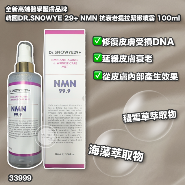 韓國DR.SNOWYE 29+ NMN ANTI-AGING & WRINKLE CARE MIST 抗衰老提拉緊緻噴霧 100ml【15/7截單 | 預計8月中至尾到貨 | 20250710(33999.)】