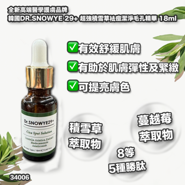 🐥執雞🐥韓國DR.SNOWYE 29+ CICA SPOT SOLUTION 超強積雪草袪痘潔淨毛孔精華 18ml【20250710(34006.)】⚠️數量有限⚠️先入先得⚠️售完即止