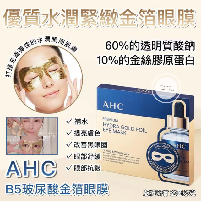 韓國🇰🇷AHC 優質水潤緊緻金箔眼膜 (1盒5片) 【現貨在倉 隨單派送 | 20250818(14127.)】