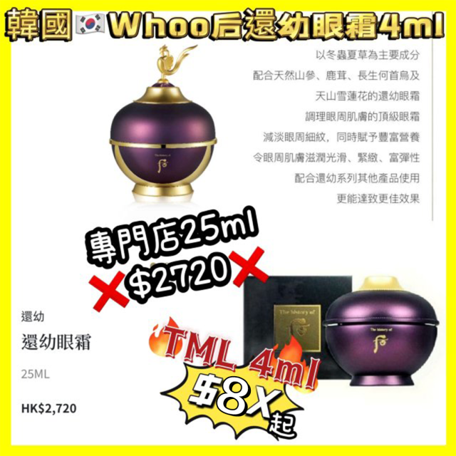 15906.22/3月韓國連線🔥韓國 Whoo 后 還幼眼霜4ml🔴有盒/無盒款隨機🔴⚠️27/3截單⚠️預計5月中到貨