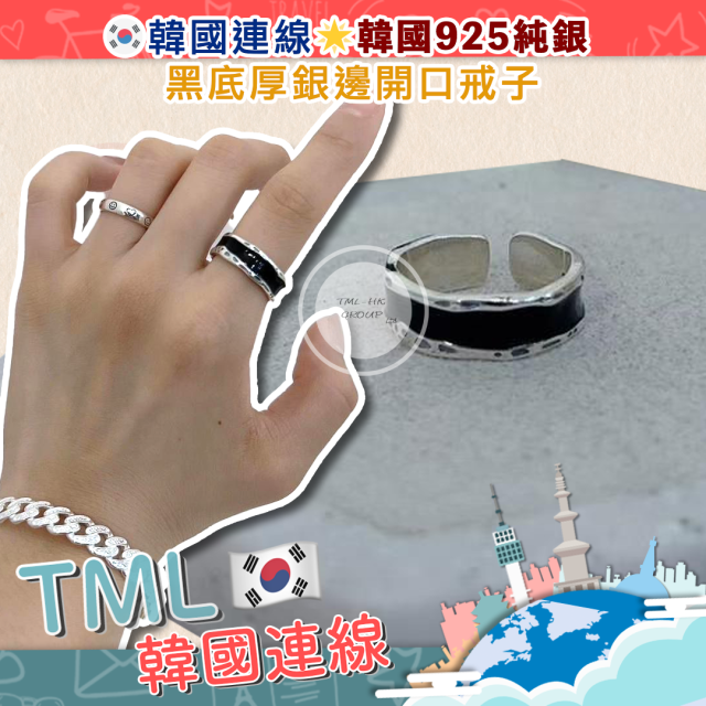🐥執雞🐥韓國925純銀 黑底厚銀邊開口戒子 ⚠️數量有限⚠️先入先得⚠️售完即止⚠️ (14601.)】