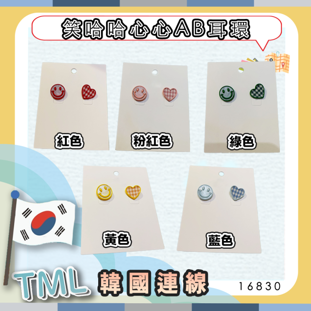 🐥執雞🐥韓國 笑哈哈心心AB耳環⚠️數量有限⚠️先入先得⚠️售完即止⚠️ (16830.)】