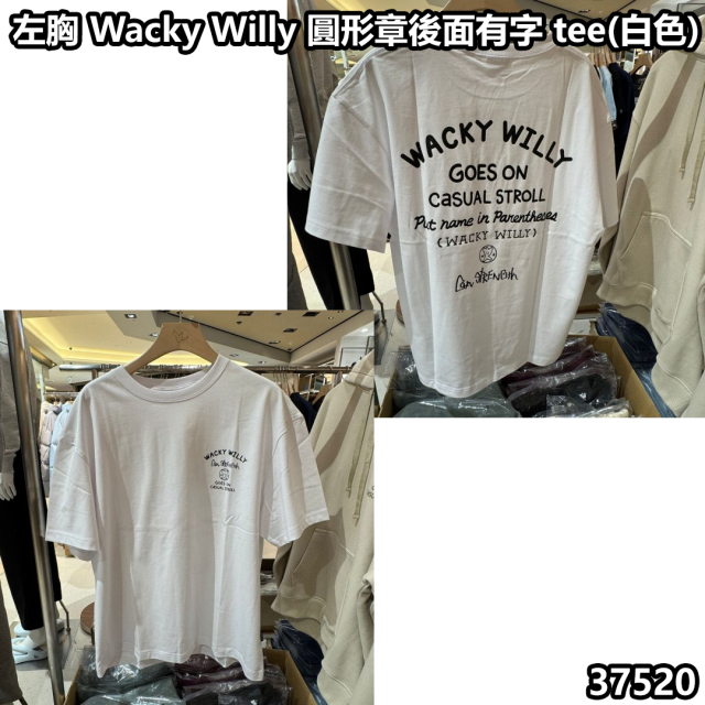 37520.27/5月韓國連線 左胸 Wacky Willy 圓形章後面有字 tee(白色)(MG2403ST13)⚠️數量有限⚠️售完即止⚠️1/6截單⚠️預計7月中到貨