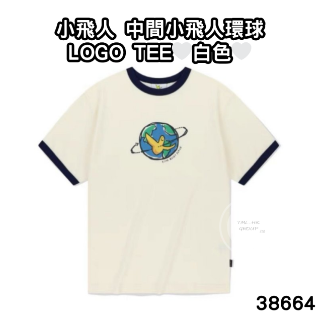 38664.18/11月韓國連線 小飛人 中間小飛人環球LOGO TEE🤍白色