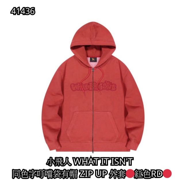 41436.韓國小飛人 WHAT IT ISN'T 同色字叮噹袋有帽 ZIP UP 外套(MG2401HZ14) 🔴紅色RD🔴