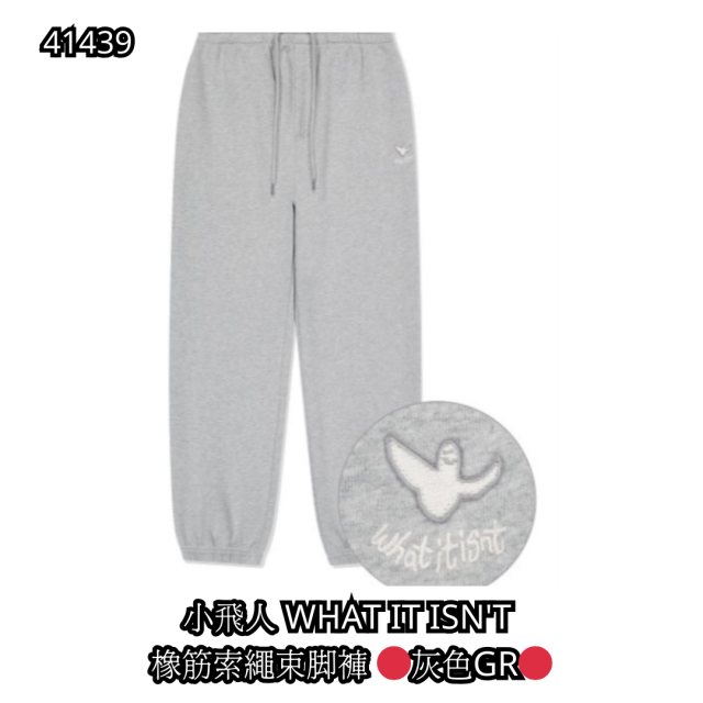 41439. 韓國小飛人 WHAT IT ISN'T 橡筋索繩束腳褲 (MG2401PT01) 🔴灰色GR🔴