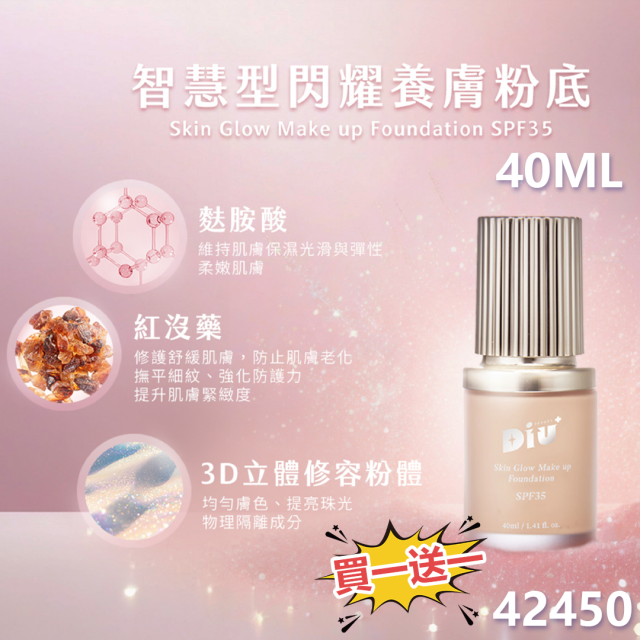 台灣 Diu+ 智慧型閃耀養膚粉底40ML SPF35【買一送一 | 預計10月中至尾出貨 | 20251003(42450.)】