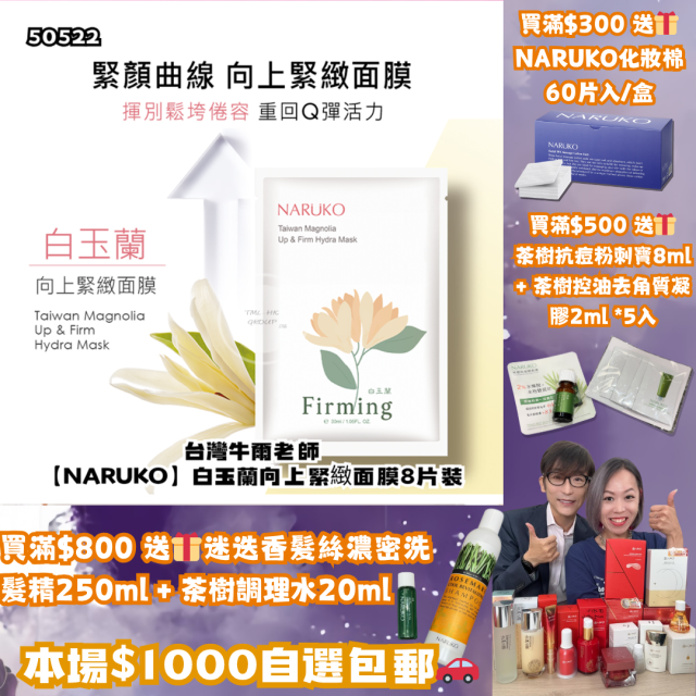 台灣牛爾老師【NARUKO】白玉蘭向上緊緻面膜8片裝【$1000包郵 | 27/10截單 | 預計12月初至中到貨 | 20251022(50522.)】