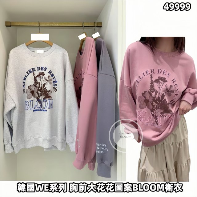 韓國WE系列 胸前大花花圖案BLOOM衛衣【買五件包郵及送東大門電話繩一條 | 31/10截單 | 預計12月初至中到貨 | 20251026B(49999.)】