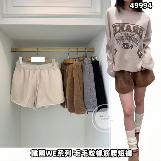 韓國WE系列 毛毛粒橡筋腰短褲【買五件包郵及送東大門電話繩一條 | 31/10截單 | 預計12月初至中到貨 | 20251026B(49994.)】