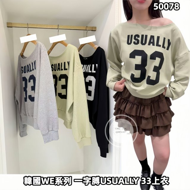 韓國WE系列 一字膊USUALLY 33上衣【買五件包郵及送東大門電話繩一條 | 31/10截單 | 預計12月初至中到貨 | 20251026B(50078.)】