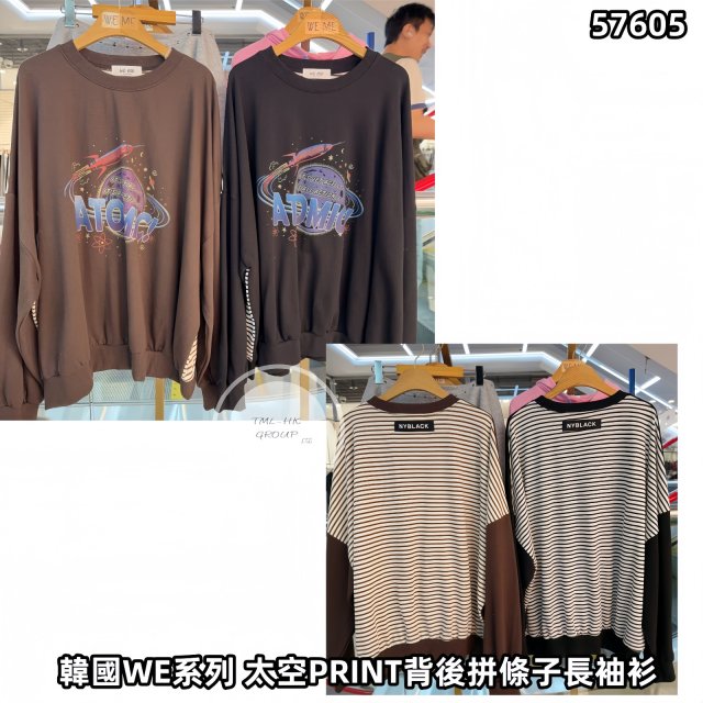 韓國WE系列 太空PRINT背後拼條子長袖衫【買五件包郵及送東大門電話繩一條 | 31/10截單 | 預計12月初至中到貨 | 20251026B(57605.)】