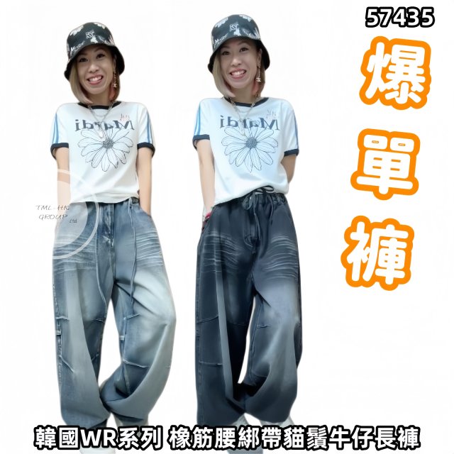 韓國WR系列 橡筋腰綁帶貓鬚牛仔長褲【買五件包郵及送東大門電話繩一條 | 31/10截單 | 預計12月初至中到貨 | 20251026B(57435.)】