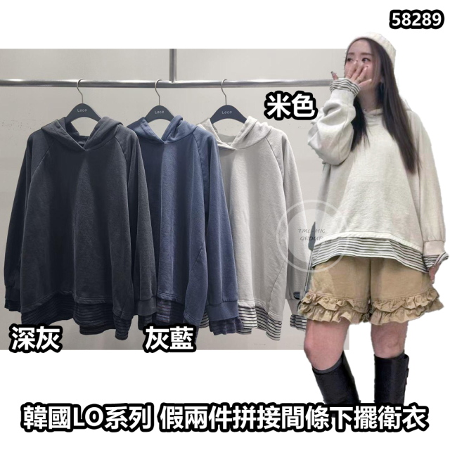 韓國LO系列 假兩件拼接間條下擺衛衣【買5件自選包郵 | 6/11截單 | 預計12月中到貨 | 20251102B(58289.)】