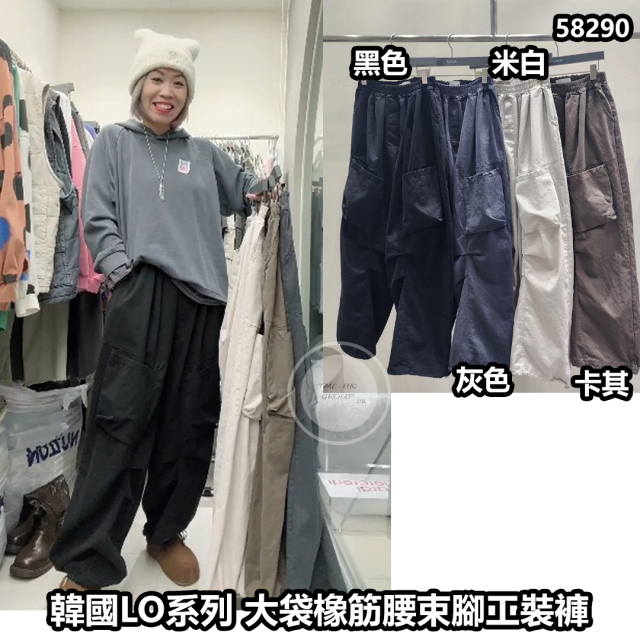 韓國LO系列 大袋橡筋腰束腳工裝褲【5件自選包郵 | 6/11截單 | 預計12月中到貨 | 20251102B(58290.)】