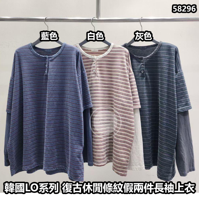 韓國LO系列 復古休閒條紋假兩件長袖上衣【5件自選包郵 | 6/11截單 | 預計12月中到貨 | 20251102B(58296.)】