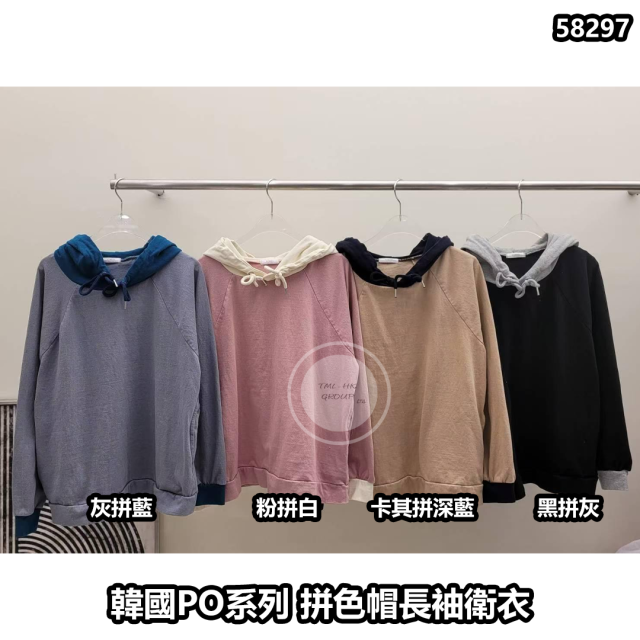 韓國PO系列 拼色帽長袖衛衣【5件自選包郵 | 6/11截單 | 預計12月中到貨 | 20251102B(58297.)】