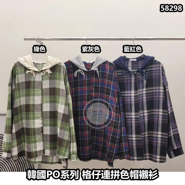 韓國PO系列 格仔連拼色帽襯衫【5件自選包郵 | 6/11截單 | 預計12月中到貨 | 20251102B(58298.)】