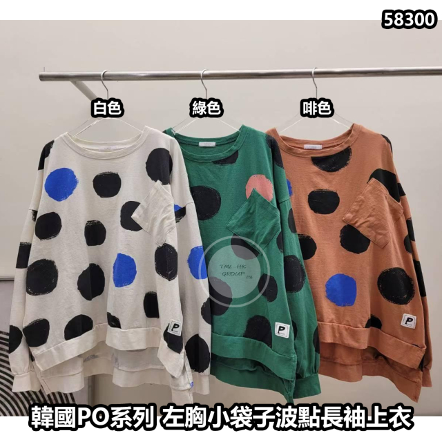 韓國PO系列 左胸小袋子波點長袖上衣【5件自選包郵 | 6/11截單 | 預計12月中到貨 | 20251102B(58300.)】