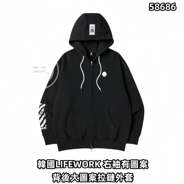 韓國LIFEWORK 右袖有圖案背後大圖案拉鏈外套(LW254ZT401)【指定服裝每買1件送環保袋 | 6/11截單 | 預計12月中至尾到貨 | 20251101A(58686.)】