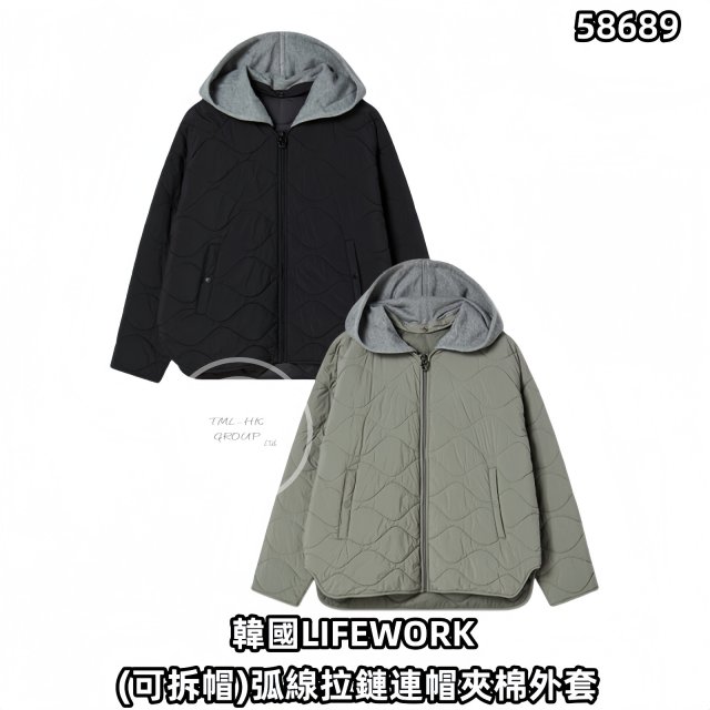 韓國LIFEWORK (可拆帽)弧線拉鏈連帽夾棉外套(LW254JP730)【指定服裝每買1件送環保袋 | 6/11截單 | 預計12月中至尾到貨 | 20251101A(58689.)】