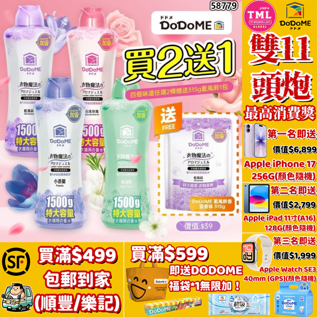 DoDoME 衣物魔法留香珠 1500g【滿$499包郵 | 滿$599送福袋 | 11/11截單 | 預計12月初至中到貨 | 20251106(58779.)】