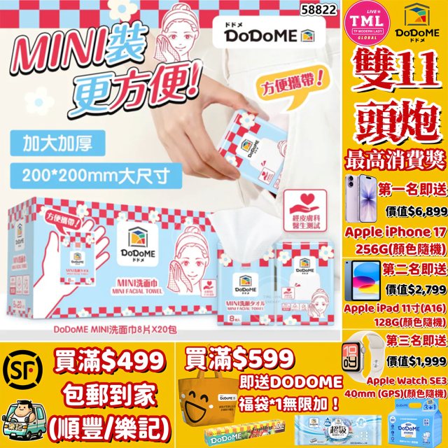 DoDoME MINI洗面巾8片×20包【滿$499包郵 | 滿$599送福袋 | 11/11截單 | 預計12月初至中到貨 | 20251106(58822.)】