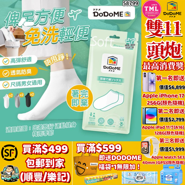 DoDoME 旅行短襪(6對裝)【滿$499包郵 | 滿$599送福袋 | 11/11截單 | 預計12月初至中到貨 | 20251106(58799.)】