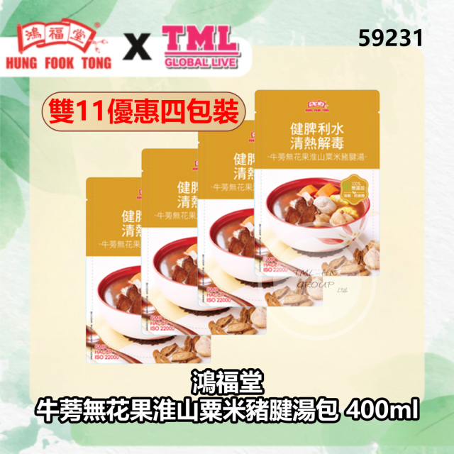 [雙11優惠四包裝] 鴻福堂 牛蒡無花果淮山粟米豬腱湯包 400ml(褔利款)【買滿$499包郵 | 14/11截單 | 預計12月初至中到貨 | 20251109(59231.)】