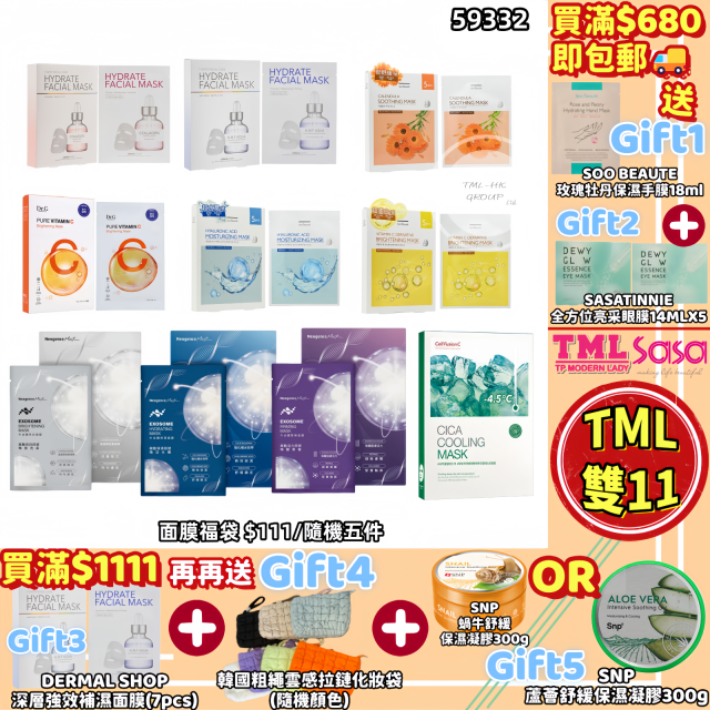 SASA X TML 面膜福袋 $111/隨機五件【全場買滿$680包郵 | 16/11截單 | 預計聖誕前收貨 | 20251111(59332.)】