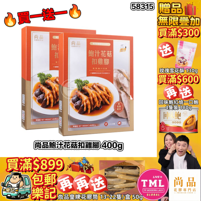 TML X 尚品 鮑汁花菇扣雞腳 400g【買一送一 | 17/11截單 | 預計12月中派貨 | 20251112(58315.)】