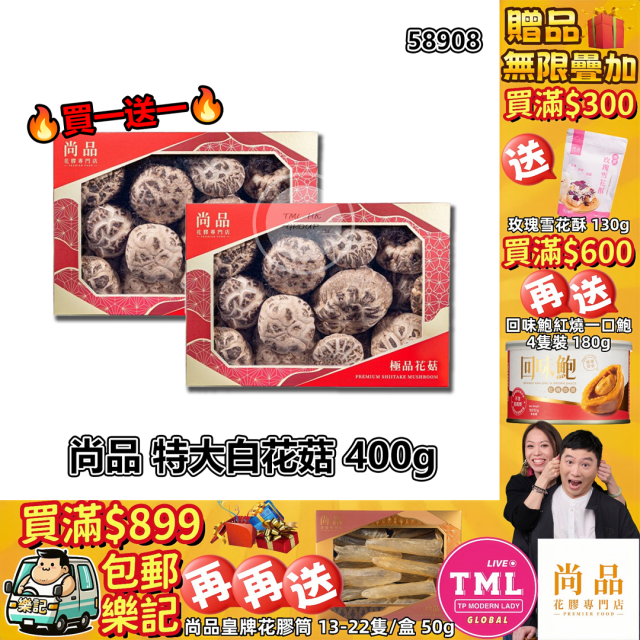 TML X 尚品 特大白花菇 400g【買一送一 | 17/11截單 | 預計12月中派貨 | 20251112(58908.)】