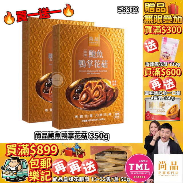 TML X 尚品 鮑魚鴨掌花菇 350g【買一送一 | 17/11截單 | 預計12月中派貨 | 20251112(58319.)】