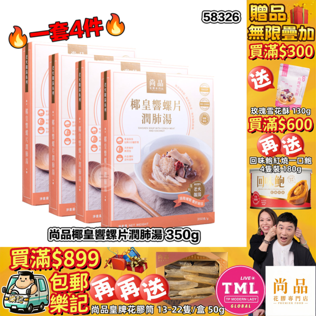 TML X 尚品 椰皇響螺片潤肺湯 350g【一套4件 | 17/11截單 | 預計12月中派貨 | 20251112(58326.)】