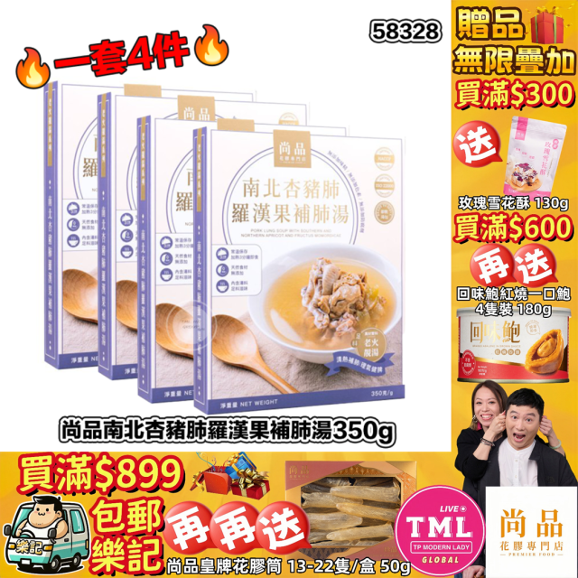 TML X 尚品 南北杏豬肺羅漢果補肺湯 350g【一套4件 | 17/11截單 | 預計12月中派貨 | 20251112(58328.)】