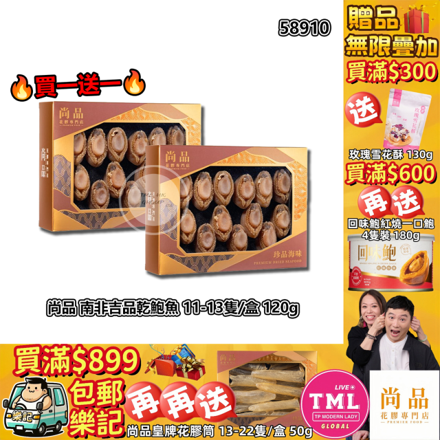 TML X 尚品 南非吉品乾鮑魚 11-13隻/盒 120g【買一送一 | 17/11截單 | 預計12月中派貨 | 20251112(58910.)】