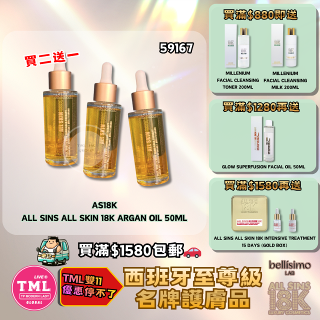 AS18K ALL SINS ALL SKIN 18K ARGAN OIL 50ml【買二送一 | 20/11截單 | 預計12月中至尾到貨 | 20251115(59167.)】