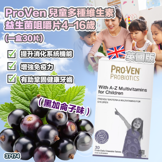 英國版ProVen 兒童多種維生素 益生菌咀嚼片4-16歲(黑加侖子味)一盒30片【22/11截單 | 預計12月中至尾 到貨 | 20251117(59239.)】
