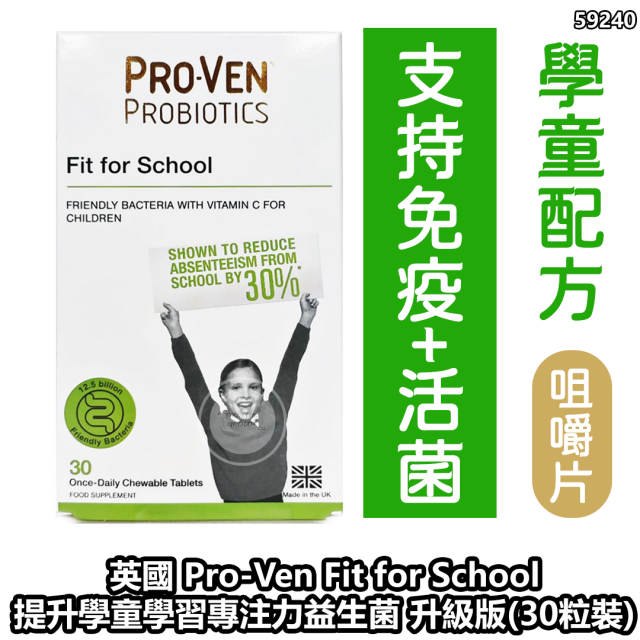 英國 Pro-Ven Fit for School 提升學童學習專注力益生菌 升級版(30粒裝)【22/11截單 | 預計12月中至尾 到貨 | 20251117(59240.)】