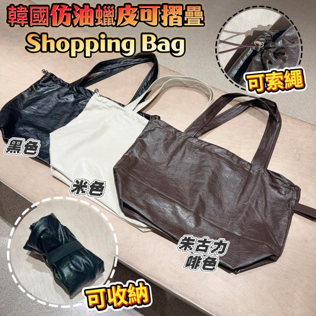 韓國 仿油蠟皮可摺疊 SHOPPING BAG【5件包郵 | 28/11截單 | 預計12月尾至1月初到貨 | 20251123B(59605.)】