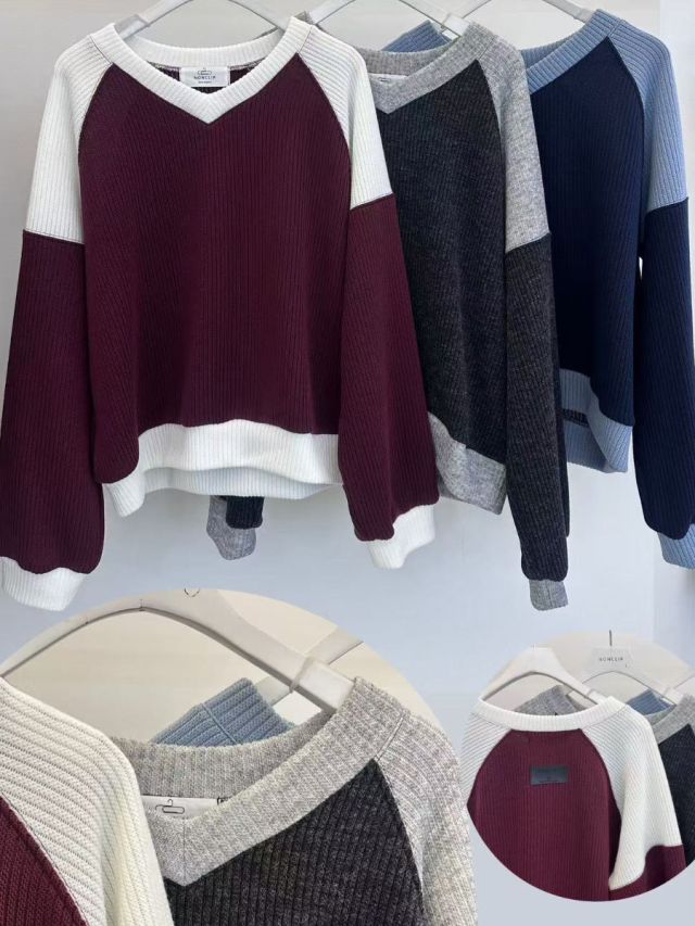 韓國 夫妻檔系列 撞色V領紋針織衫【買滿5件包郵 | 28/11截單 | 預計12月尾至1月初到貨 | 20251123B(50288.)】