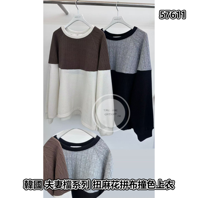 韓國 夫妻檔系列 扭麻花拼布撞色上衣【買滿5件包郵 | 28/11截單 | 預計12月尾至1月初到貨 | 20251123B(57611.)】