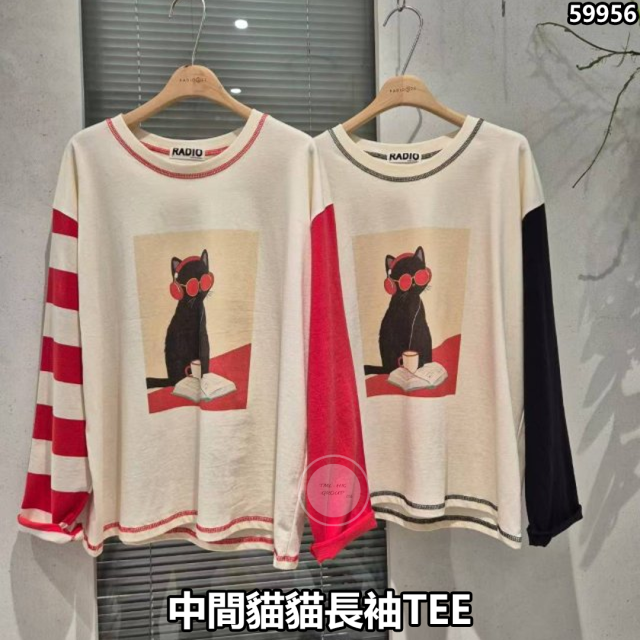 韓國 RA系列 中間貓貓長袖TEE【獨立5件包郵 | 福利款 | 15/12截單 | 預計1月中至尾到貨 | 20251210B(59956.)】
