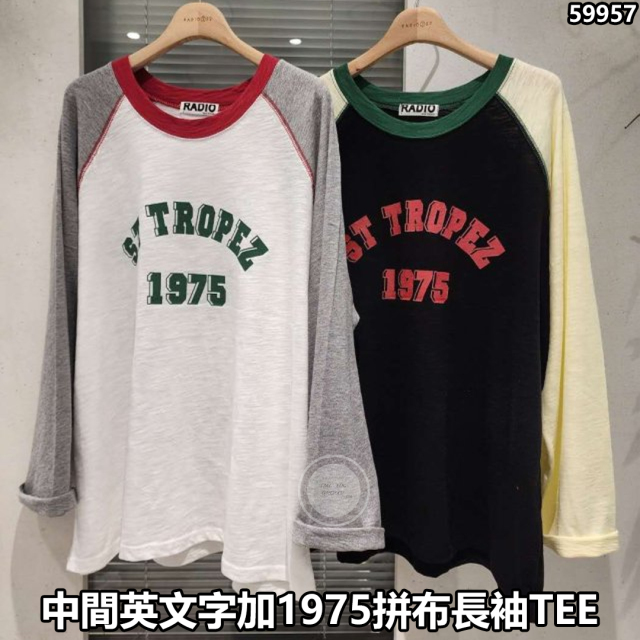 韓國 RA系列 中間英文字加1975拼布長袖TEE【獨立5件包郵 | 福利款 | 15/12截單 | 預計1月中至尾到貨 | 20251210B(59957.)】
