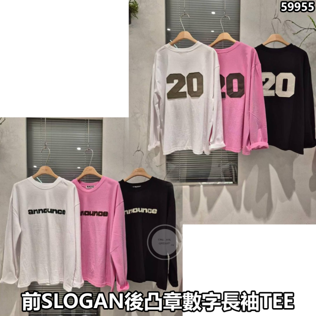 韓國 RA系列 前SLOGAN後凸章數字長袖TEE【獨立5件包郵 | 福利款 | 15/12截單 | 預計1月中至尾到貨 | 20251210B(59955.)】