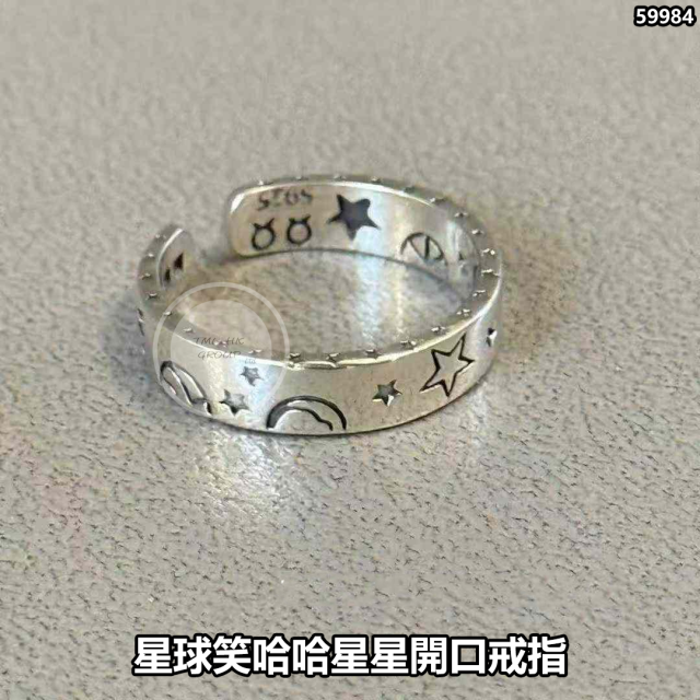 韓國 MM925純銀系列 星球笑哈哈星星開口戒指【6件包郵 | 4件以上減$10 | 預計1月中至尾到貨 | 20251211B(59984.)】