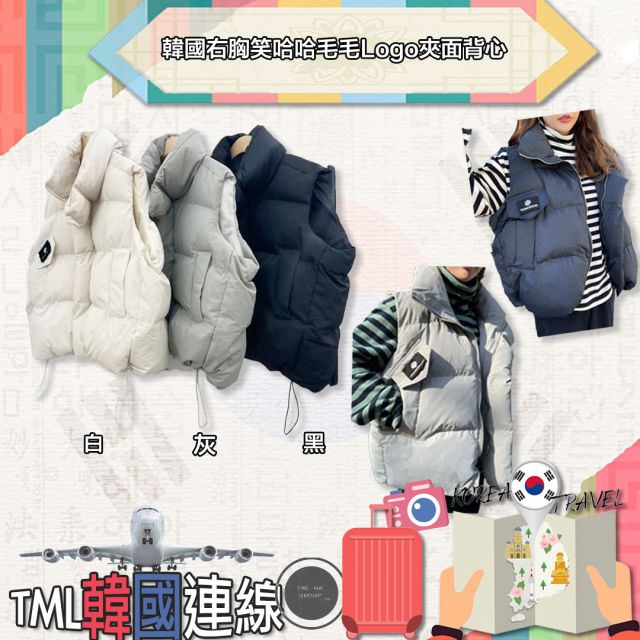 韓國🇰🇷高質品牌BF 右胸笑哈哈毛毛Logo夾棉背心【現貨 | 預計2-3星期派貨 | 20251212Z(11752.)】